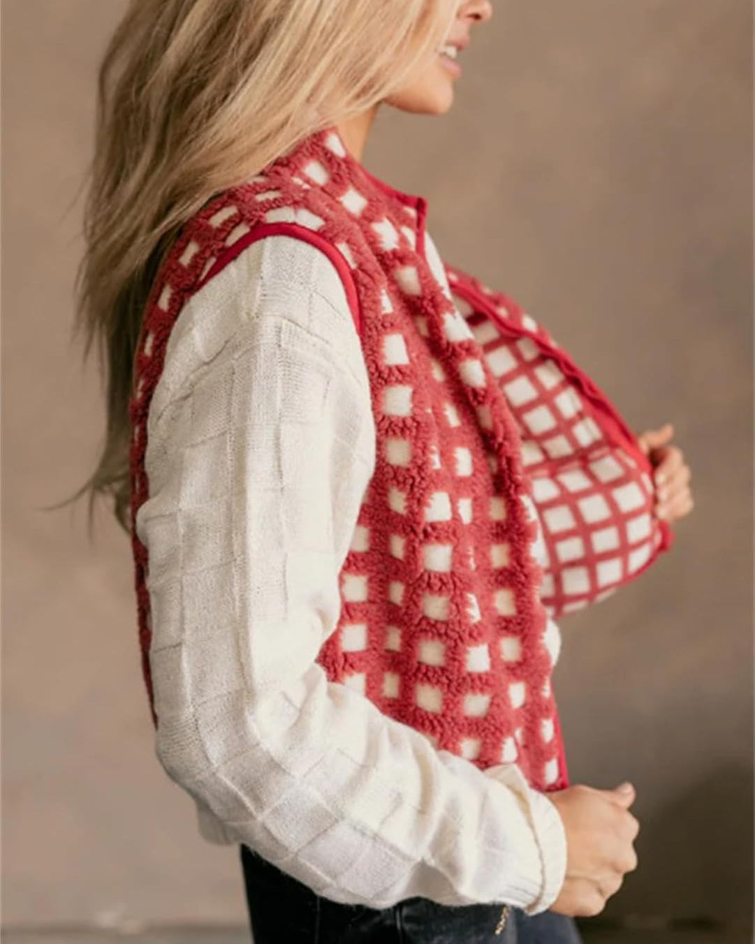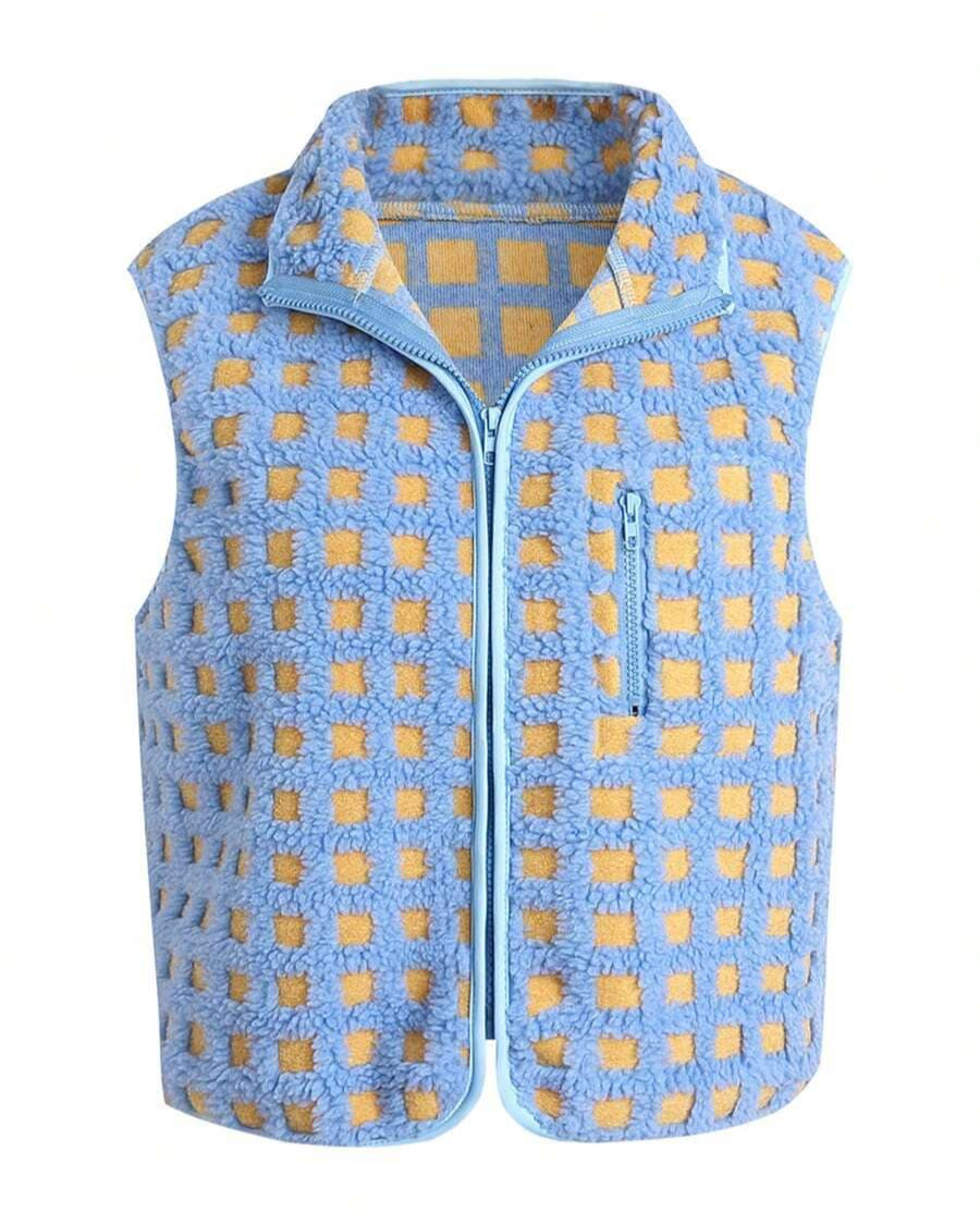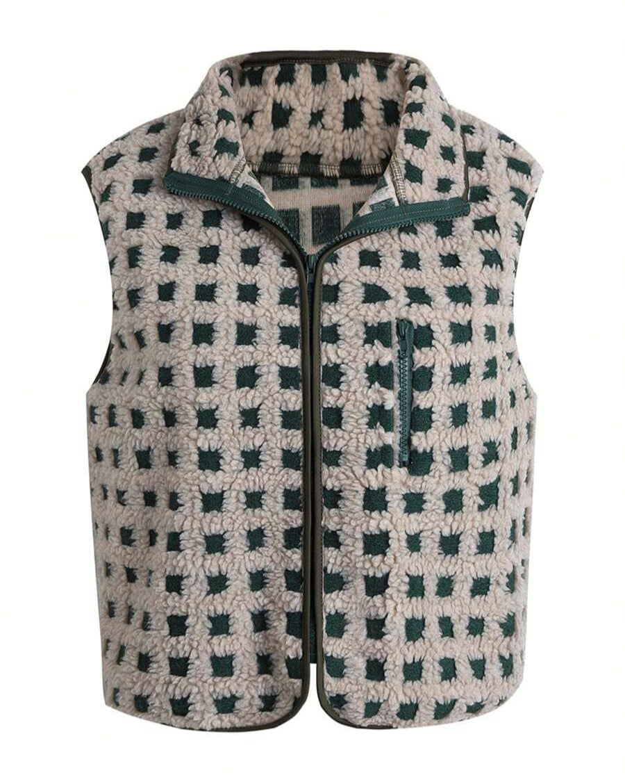 Sasha - Gilet Sherpa à Carreaux Chic & Douillet