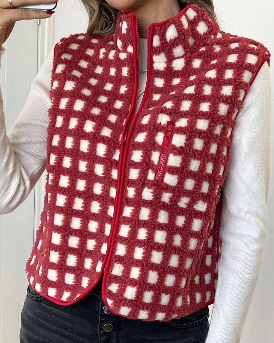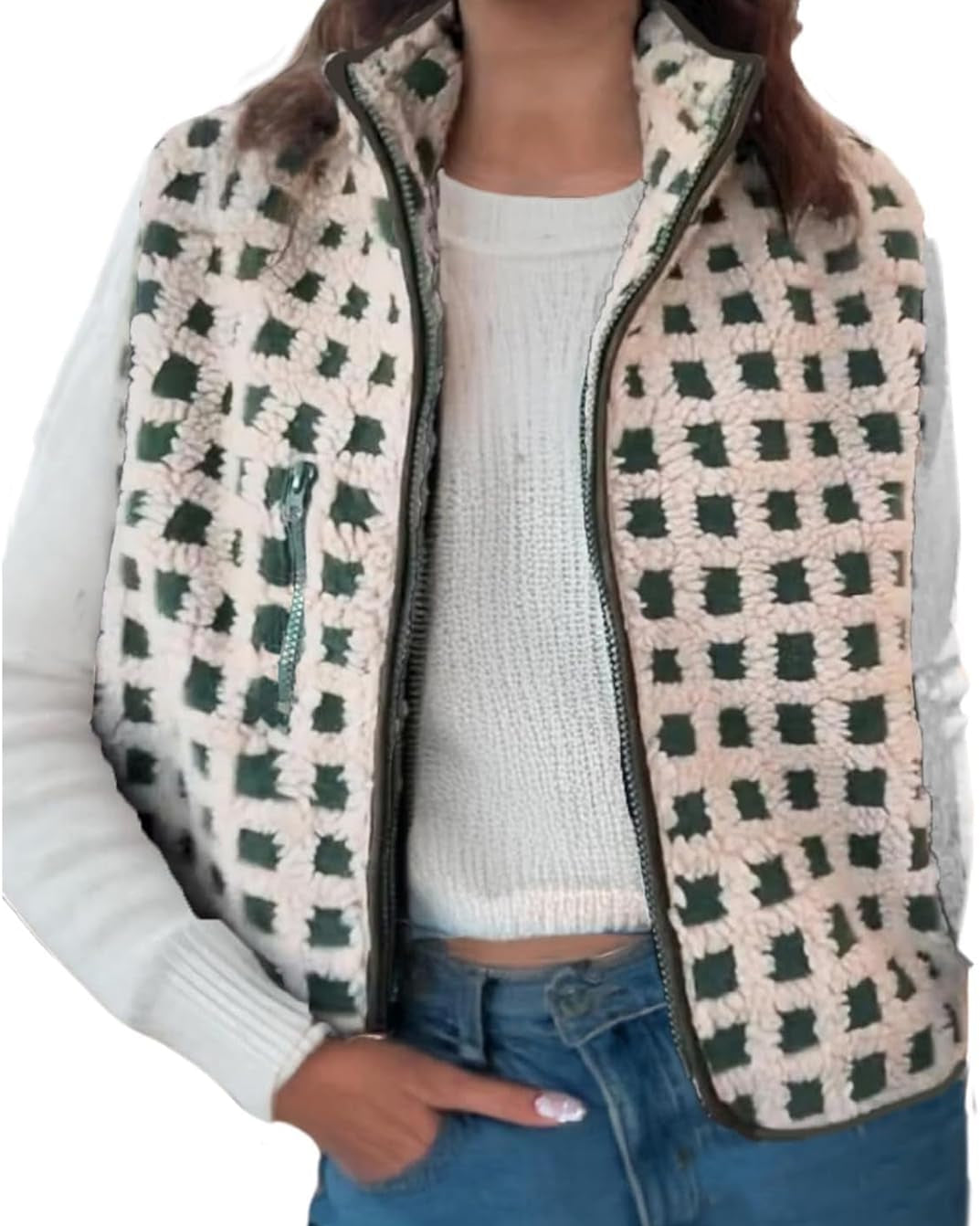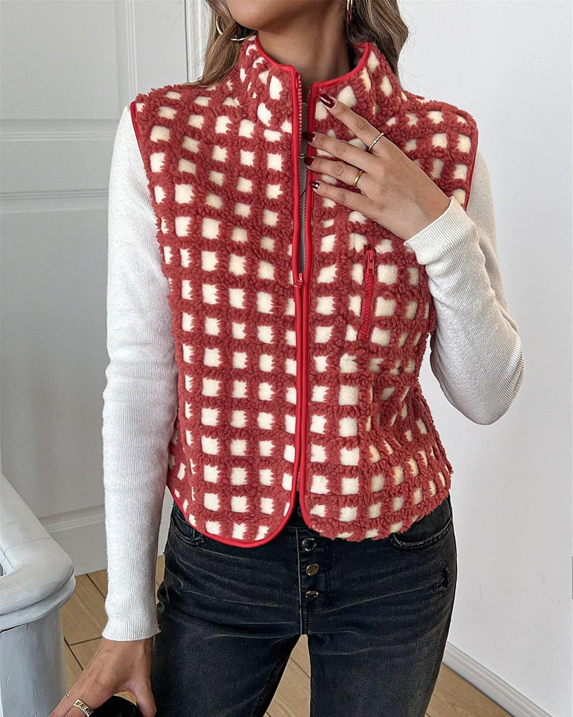 Sasha - Gilet Sherpa à Carreaux Chic & Douillet